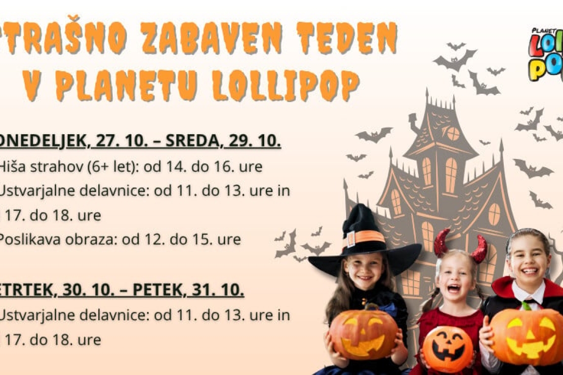Za najmlajše Aleja pripravlja praznično dogajanje v igralnici Planet Lollipop, kjer bodo od 27. do 31. oktobra potekale ustvarjalne delavnice, hiša strahov, poslikava obraza in presenečenja. Celoten program je objavljen na spletni strani Aleje.